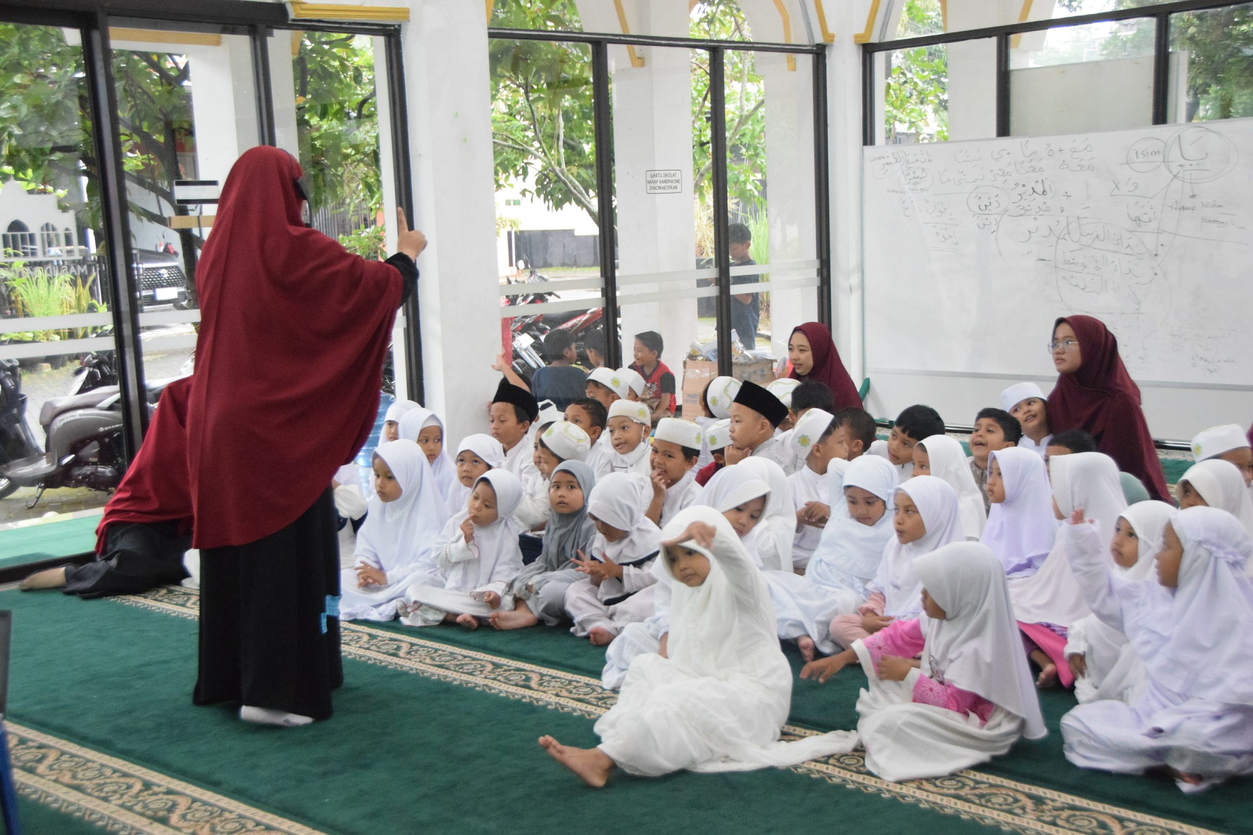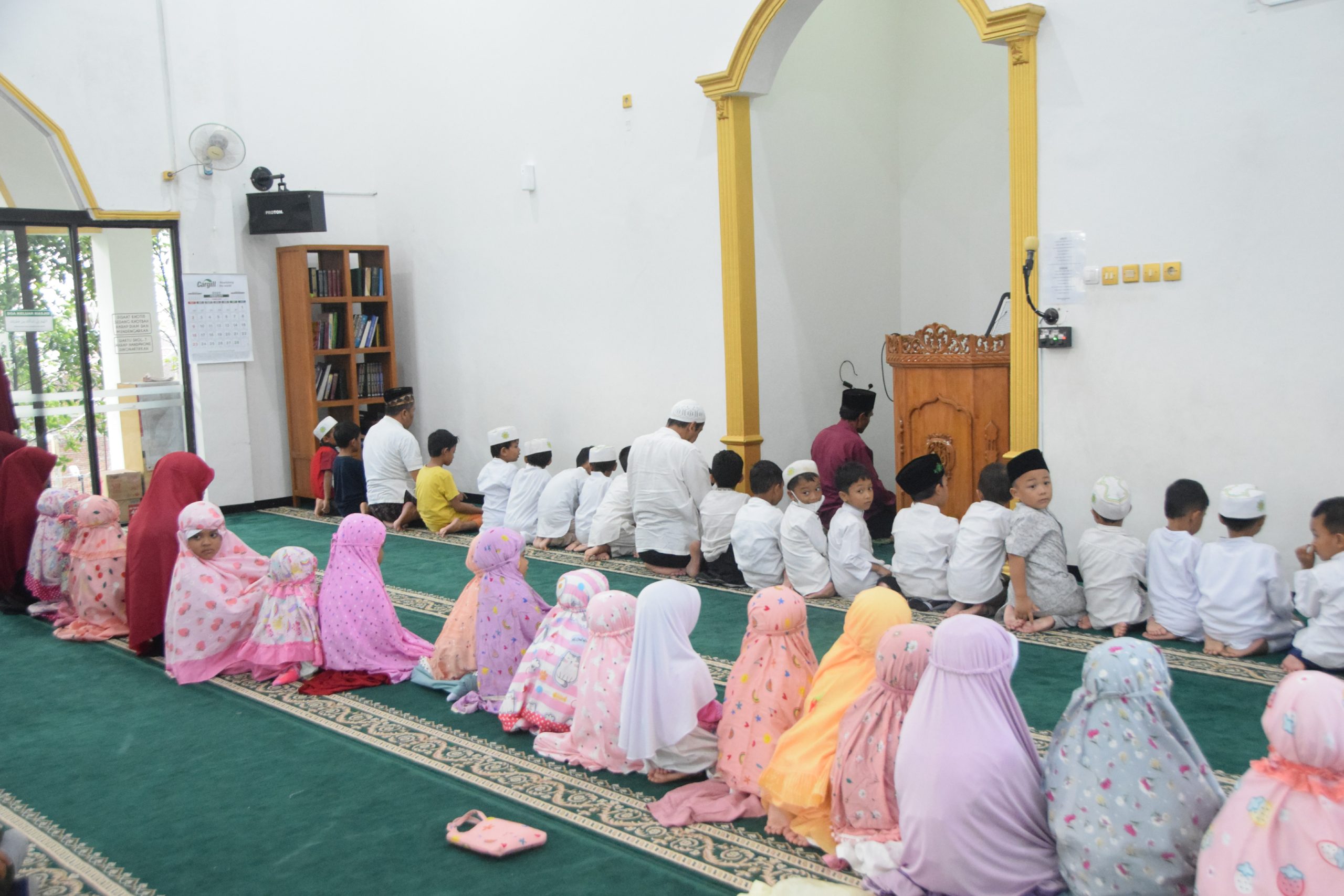 Acara dimulai pukul 15.00 WIB. Setibanya di lokasi, anak-anak disambut hangat oleh para ustadzah dan diajak berfoto bersama menggunakan bingkai bertuliskan “Marhaban Ya Ramadhan”. Setelah itu, mereka melaksanakan salat Ashar berjamaah yang dipimpin dengan tertib. Usai salat, anak-anak melanjutkan dengan kegiatan ikrar seperti biasanya. Karena cuaca saat itu sempat hujan, kegiatan berikutnya dilakukan di dalam masjid sambil menonton film kartun edukatif tentang puasa. Meskipun hujan, suasana tetap hangat dan penuh semangat.