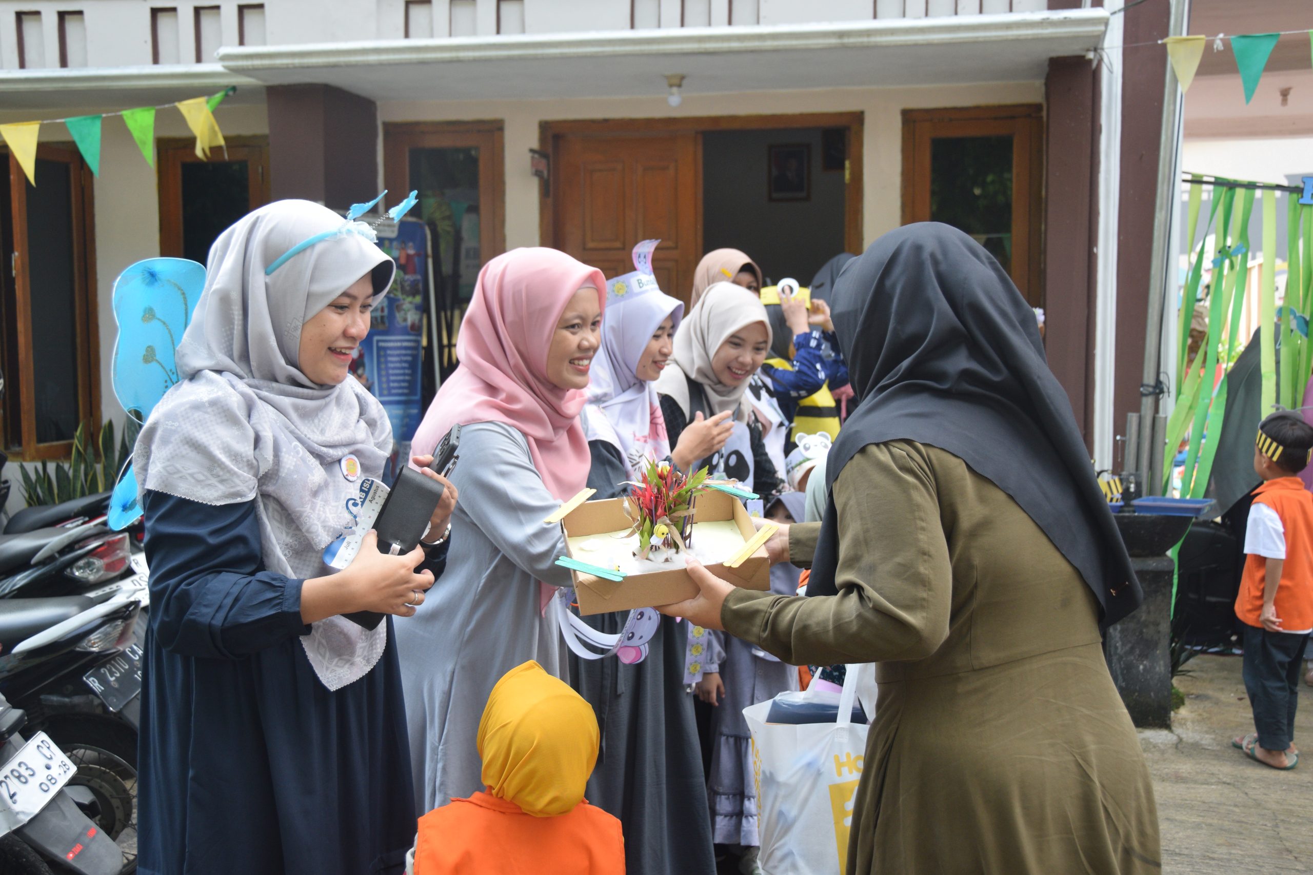 Saat memasuki area sekolah, mereka disambut meriah oleh dekorasi “Hutan Al Izzah” — lorong yang dihias menjadi hutan mini dengan gajah, lebah, panda, dan kupu-kupu, lengkap dengan rintangan kecil yang harus dilewati. Penyambutan ini juga dibantu oleh FOR.U, organisasi wali murid yang selalu setia mendukung kelancaran kegiatan sekolah.
